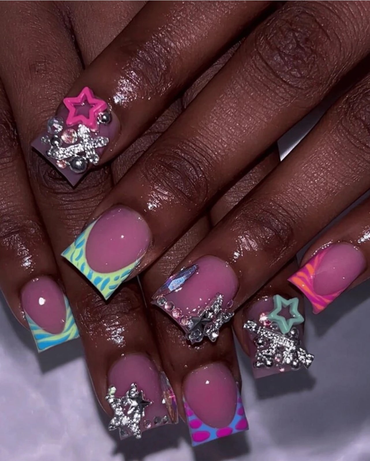 Colorful French Tip with Charms